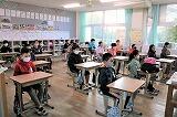 学校では、今朝、全校朝会が行われました。3密を避けるため、放送で行いました。