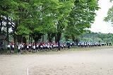 子どもたちは、マスク着用、1mの間隔とって、団の位置で開会式、閉会式を行います。