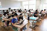 6年生は、放送を聞きながらノートパソコンを使って、聞いた内容をまとめていました。