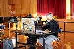 今回のお話は「3枚のおふだ」。それもなんと、山田弁でお話ししてくださいまいした。子どもたちは、山田弁の説明の紙を見ながら、時にはクスっと笑って、食い入るように見ていました。
