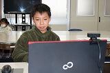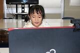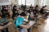 6年生はパソコンで話の内容をまとめながら聞いていました。みんな静かに集中してテレビ画面を見ていました。