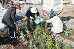 花ボランティアの方々が毎週お休みの日に学校に来てくださり、正門を入ってすぐの花壇のお手入れをしてくださいます。今日は朝倉さん、椎屋さん、別府さんが追加の苗を植えてくださいました。とってもステキな花壇です。