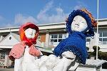花壇の真ん中にある銅像に、寒くないようにかわいい毛糸の帽子と肩掛けをプレゼントしてくださったのは椎屋さん。暖かくてにっこりと笑っています。
