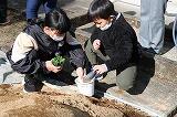 今週は、卒業式に向けての花鉢づくりを行います。パンジーとビオラの一人二鉢を育てていきます。