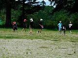 急にやってきた蒸し暑い夏空の下、子どもたちは元気いっぱい走り回っています。昼休みには、学年関係なく、多くの子どもたちが外に出て仲良く遊んでいました。しかし、熱中症が心配されますので、マスクを外すことを徹底する必要があります。