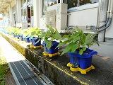 ※1年生が育てているアサガオもぐんぐん伸びています。どんな色の花が咲くか、楽しみですね。