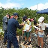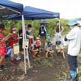 8月2日(火)の午前中、校区内を流れる丸谷川で水辺環境調査があり、4年生から6年生までの希望者が参加しました。都城市環境政策課の皆さんが、水辺に生息する生き物から環境についてどんなことがわかるかを丁寧に説明してくださいました。
