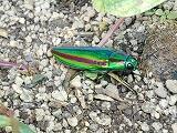 人気のいない夏休みの学校では、普段は人間を見つけるとすぐに逃げ出すトカゲがドアから中を窺っていたり、久しぶりに玉虫を見つけたりして、うれしくて思わず写真に撮ってみました。
