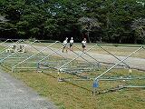刈払機持参の方はトラックを中心に、その他の方はテント張りのあと刈った草を集めて回りました。重機や軽トラックもフルに活用して1時間ちょっとで作業終了できました。