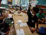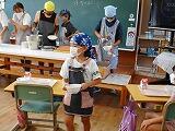 9月28日(水) 運動会の振替や祝日で、今日は1週間ぶりの給食でした。1年生も今日から給食当番が始まりました。4人の当番さんが2人ペアでお盆と牛乳を運びます。お盆の係は全員の机に配ったら終わりです。牛乳の係も同じく全員に配りますが、その後は5,6年生が注ぎ分けてくれた食器も運んで、最後は一列に並んで足りないものはないかの確認をしました。緊張していた様子でしたが、最後まで上手にできていました。他の児童も自分が当番になったら何をすればいいか、しっかり見て手順を覚えている様子でした。