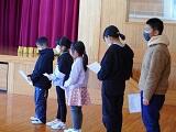 終業式では6人の児童が2学期に頑張ったことを発表しました。全員堂々と発表して、聞いていた他の児童もおしゃべりもせず静かに聞くことができました。以前はもう少しキョロキョロする子がいたように思いますが、わずかな間に成長するものだと感心したところです。