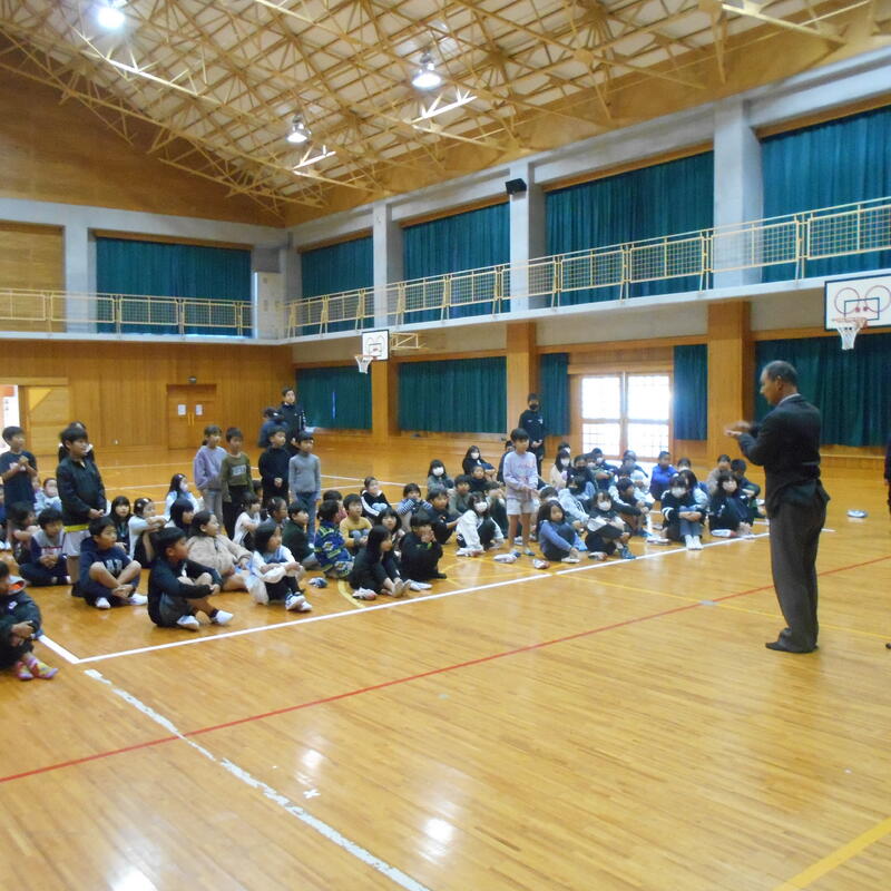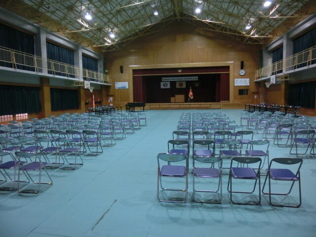 掃除時間は、全校児童で学校の周りをきれいに掃除して、6時間目は、5、6年生が体育館のセッティングをしてくれました。