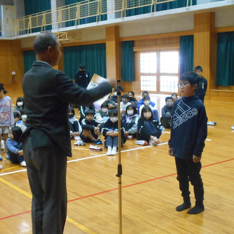 代表で6年生の児童が、賞状を受け取りました。これからも、たくさん運動をして、元気な体を作って欲しいですね。