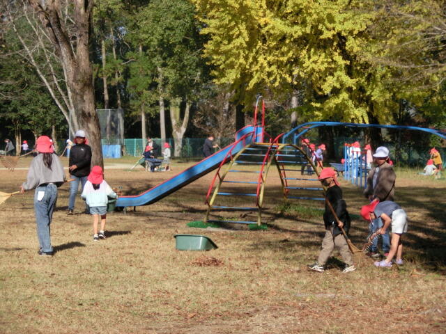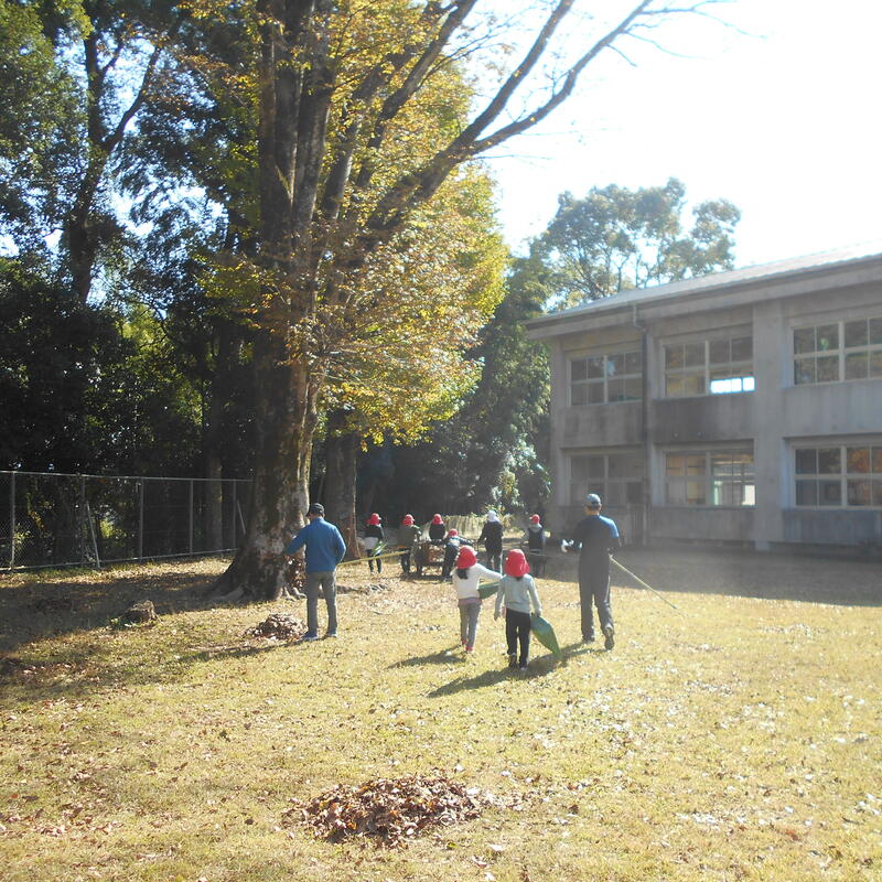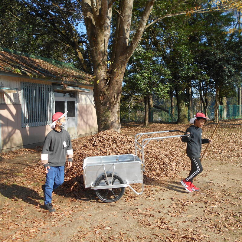 今週も全校のみんなで落ち葉の掃除をしました。校庭や運動場には、たくさんの落ち葉が散っています。