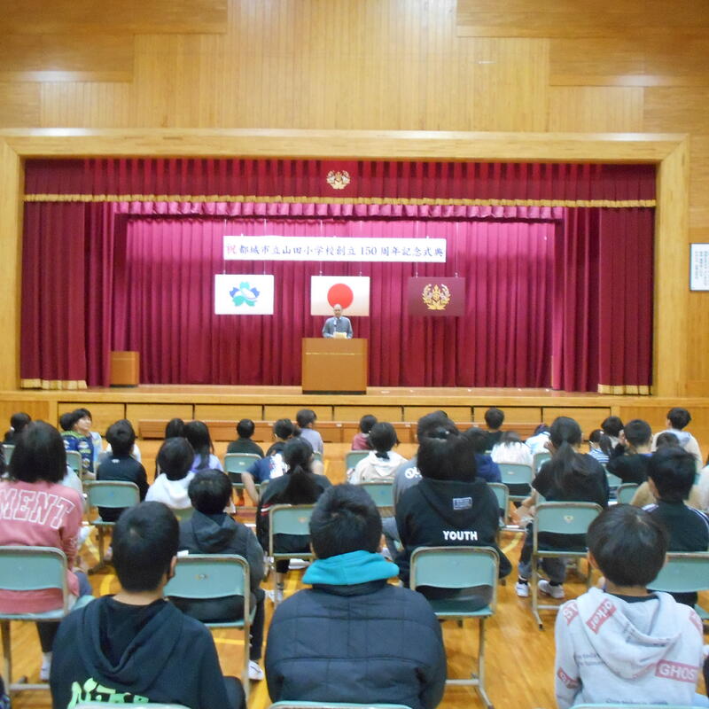 本日、山田小学校の創立150周年記念式典を行いました。多くの来賓の皆様、保護者の皆様をお迎えして、無事に実施することができました。