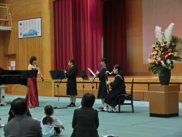 コンサートの後半は、本校卒業生の高校生、中学生のクラリネット奏者も加わり、クラリネットカルテットを披露してくださいました。