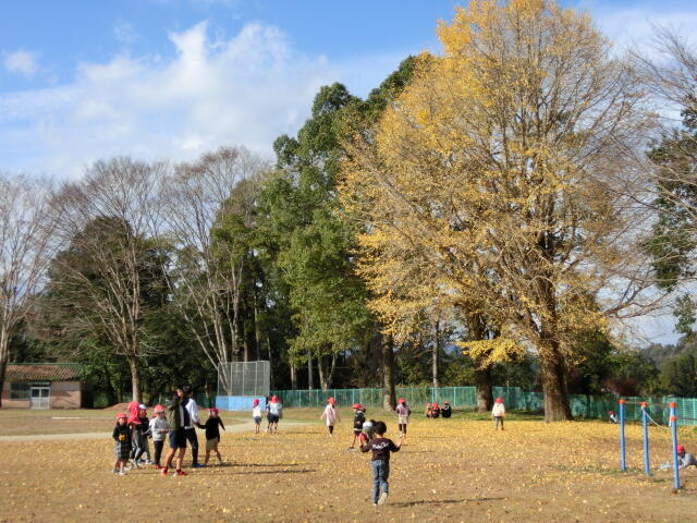 先日も落ち葉の話題を書きましたが、ますます本格的に落ち葉が降ってまいりました。持久走の練習もあるので、毎日、運動場の掃除が大変です。