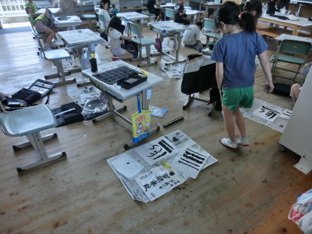 3年生が初めて「毛筆」の学習をしていました。書道の準備と片付けだけでも、結構大変そうです。