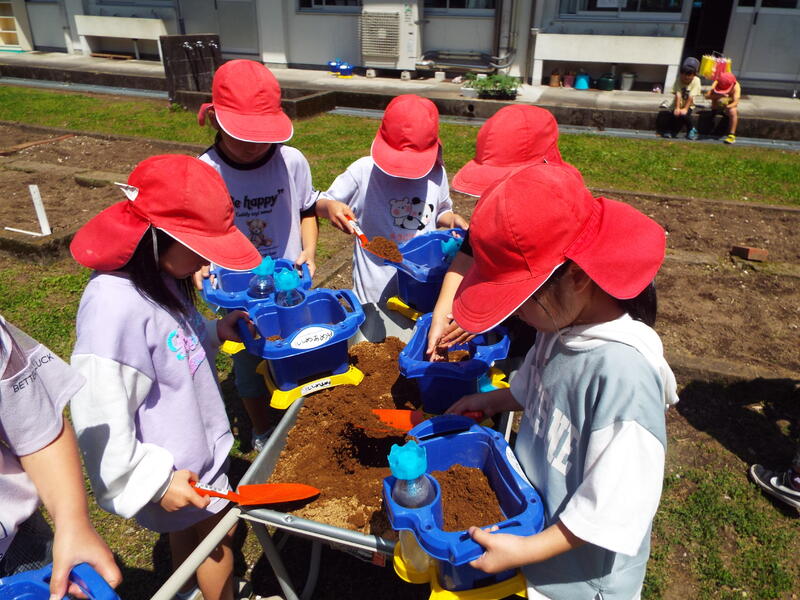 最後は水をあげます。「早く食べたいなあ」って言ってました。収穫が楽しみですね。