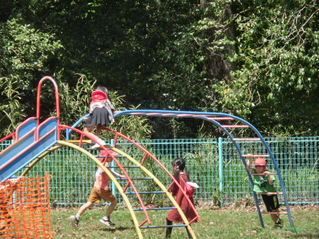 低学年のみんなは、使える遊具が増えて、大喜びです。昨日は、遊具にたくさん集まって、遊んでいました。