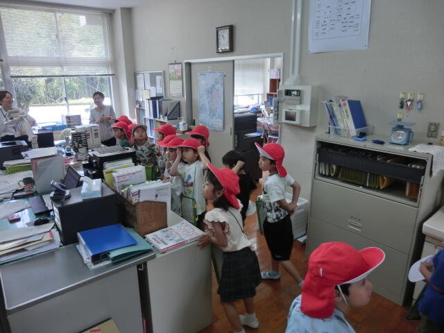 今日は、1年生が学校探検しました。狭いようで学校は意外と広いので、1年生にとっては、まさに探検です。