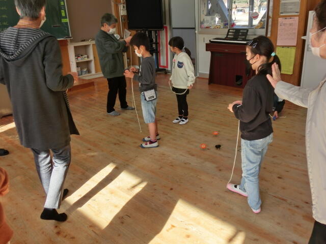 こちらは、コマ回し。「うまく回せなくても大丈夫だよ。」ってやさしく声をかけてくださり、子どもたちは、とっても楽しそうでした。参加してくださった皆様、本当にありがとうございました。