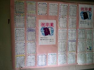 北校舎に入ると在校生から6年生へのメッセージが掲示してあります。1年生から4年生までは登校で優しくしてもらったことや給食当番でお世話になったこと、昼休みに遊んでもらったことなどへの感謝、いつも隣で学校生活を送ってきた5年生からは、係活動やクラブ活動、運動会で組み体操を教えてもらったことなどへの感謝などが綴られています。明日は卒業式、6年生として在校生や保護者や地域の皆様、先生方など関係してくださった全ての方への感謝の気持ちをもって立派な態度で式に臨む姿を期待しています。