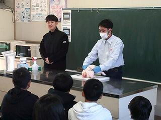 先週、6年生が宮崎の民放局の食育事業として取り組んでいる「食べキkid宣言」の出前授業に参加しました。今回は食肉加工業者の工場の様子や鶏肉解体の実演を通し、普段の生活で食べているものは命を譲り受けていることや社会問題になっている食品ロスについて考えさせられるものでした。授業の最後には食べkid宣言として班毎に話し合い。残さず食べることや手前取り、好き嫌いなど普段の生活の中で自分たちができる食品ロスを減らす方法について協議しました。
