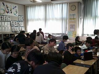 2年生が生活科の学習で地域の探検計画を話し合っていました。複数のコースに分かれて班毎に歩いて行くようです。ルート地図や予想される時間はタブレットで個人の画面に共有しています。それをもとに班毎に希望のコースや役割等を熱心に協議していました。しっかり計画を練って、本番の探検ではたくさんの発見があるといいですね。