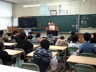この日は5,6年生を対象としたドロップスの方々による読み聞かせでした。6年生にとっては小学校最後の読み聞かせなので、今回は学年毎に実施されました。6年生では心と体の成長や自分の周りの家族のこと、自分の思い出に浸るようなお話で節目を迎える6年生はとてもありがたい内容でした。子ども達もしっかりと聞き入っていました。5年生も芥川龍之介の「鼻」と難しい内容でしたが、紙芝居形式になっていたので楽しそうに聞いていました。