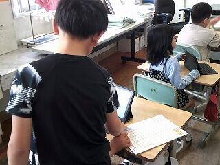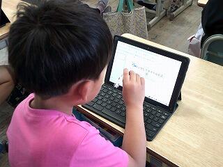 3年生が総合的な学習の時間で植えたサツマイモの育ち方や種類などこれから調べていくことのテーマを決めていました。育ちを選んだ児童は1か月毎の生長の様子をタブレットに記録していくようです。ローマ字うちでのタイピングなのでローマ字一覧や友達と確認しながら文字を打ち込んでいました。これから、記録を重ねる毎に自信をもって自分でつくりあげる力が育っていくのでしょうね。