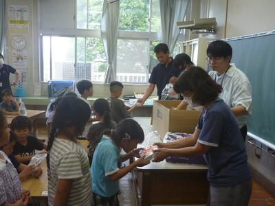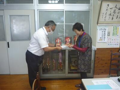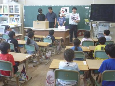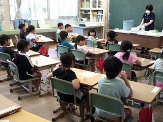6月27日(金) 山田りんどう福祉会様から1年生に防犯グッズをいただきました。最初に、『いかのおすし』の話を子どもたちに分かりやすく説明をしていただいた後に、防犯グッズを渡していただきました。自分の命は自分で守るために、この防犯グッズが役にたつとよいと思います。