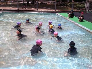 今週から、プールでの学習が始まりました。上学年、下学年の組み合わせで2学年ずつプール開きを行いました。1年生にとっては小学校で初めてのプール活動になります。この日は時折強い日射しのある蒸し暑い日で、水を楽しむのには絶好の天候でした。水に入ると1年ぶりの水の感触に歓声が沸き上がっていました。これから自分の力に合わせ、泳ぐ時の手足の動かし方や息継ぎの仕方を身に付けたり、顔を水につけたり、浮かんだりと様々な活動に挑戦していきます。楽しく安全なプール活動にしていきましょう。