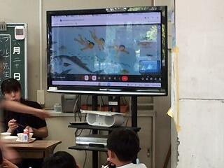 図書委員会の児童が昼の放送で読み聞かせを行いました。夏にちなんで水のお話をミートでつないで全学級へ配信しました。2名の委員会児童は事前にしっかり練習し、あいさつから本の紹介、お話の読み聞かせと、とてもスムーズに進めることができました。各学級では給食を食べながらしっかりとお話を楽しんでいました。
