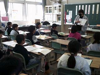 修学旅行を1週間後にひかえ、6年生では総合的な学習の時間として、本校の卒業生でもある「かたりべぐるーぷ南の風」の常磐泰代様を講師に平和学習が行われました。戦争に至る経緯や戦時中の兵士や送り出す家族の思い、学生や子どもの姿、すぐ近くに滑走路があり、戦車が走っていた地元の谷頭や都城の様子など興味深い話がありました。今では当たり前の権利が認められない同時の様子を子どもたちは真剣に聞き入っていました。来週の修学旅行で平和や周りの人々の命の大切さについて更に思いを深めることでしょう。また、この日は語り部の活動に関心のある戦争体験した地域の方も3名も見学されました。これからの歴史学習でお話を聞く機会があればと思います。