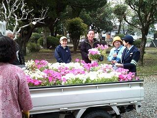 この日は地域のボランティア団体のきりっ子隊の皆様に卒業式や入学式で会場を彩ったペチュニアの花を地域の施設や公民館へ届けていただきました。また、搬出と同時に鉢が置いてあった場所や周辺の溝の掃除もしていただきました。学校と地域の橋渡しをしていただき感謝の気持ちでいっぱいです。
