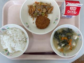 ごはん ワンタンスープ 焼き肉炒め 牛乳