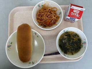減量チーズパン ナポリタンスパゲティ チキンコンソメスープ 牛乳