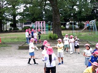 避難が終わった後に警察署の方から子ども達に、不審者に遭遇した場合の対応の話をしていただきました。