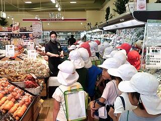 3年生が社会科の学習で地元のスーパーの見学に行きました。店員の方にコーナーごとに特色を説明をしていただき、有名な地産の商品についても学ぶことができました。その後、班別で事前に課題と考えていたこと店内を見学して確認しました。さらに、バックヤード見学、買い物体験ととても充実した活動ができました。