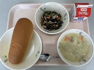 ミルクパン きのこシチュー ひじきとハムのサラダ 牛乳