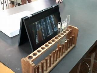 6年生が理科で水よう液の学習で観察実験をしています。今回はうすい濃度の塩酸が金属に与える影響を調べています。以前は1回の実験で変化が起こるまでの時間や様子を観察するために、みんなで顔を寄せ合って臨んでいましたが、集中力が途切れると、変化を見落とし、結果が出ないこともしばしばありました。今は、タブレットで動画として記録し、確認できるため、正確さが増し、また、画像を大きくすることで変化の様子もしっかりとらえられるようです。
