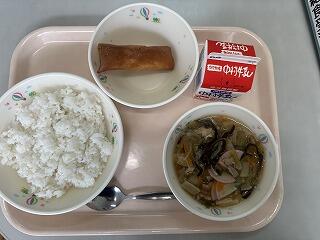 麦ごはん 揚げ春巻き 中華丼の具 牛乳