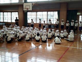 第2回の運動会全体練習を雨天のため、体育館で実施しました。今回は閉会式の練習と山田音頭の練習をしました。足を出したり引いたりと難しいところもありますが、上級生たちは慣れていて、音楽に合わせてスムーズに踊っていました。運動会当日は、地域や保護者の皆様の参加も募ります。運動会当日は子どもたちと一緒に踊ってください。