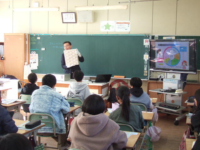泉ヶ丘高校生4名が、小学生の小さい時期からカーボンニュートラルの取組を広げるため、自作の紙芝居を作って授業に参加しました。地球温暖化やカーボンニュートラル、自分たちにできることは?というテーマのもと4人で役割分担をしながら、丁寧にそして楽しく紙芝居をしてくれました。児童も大変興味をもって授業に取り組むことができました。SDGsの取組の一つとして、小学生にも広がっていくことはとても大事なことだと思います。色々と実践を通して、どのような方法が効果的かを検証してほしいと思いました。高校生がんばれ!