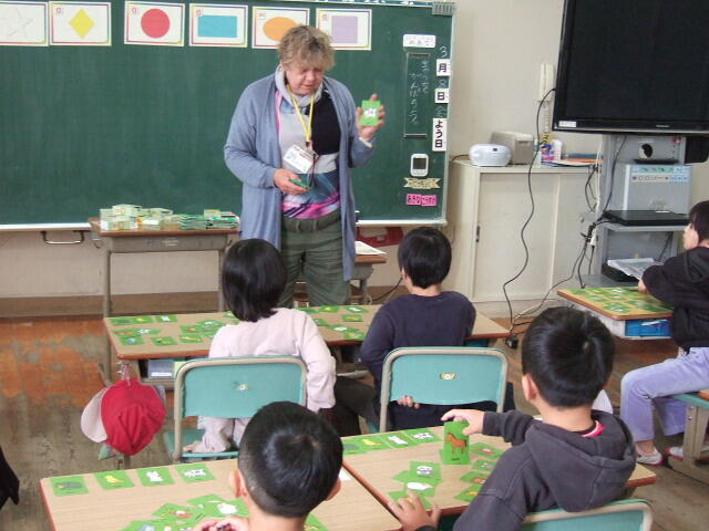 今日は、待ちに待った1年生の英語学習です。動物のカードを見ながら、ALTの先生が発音する動物を探します。みんな楽しく活動できました。