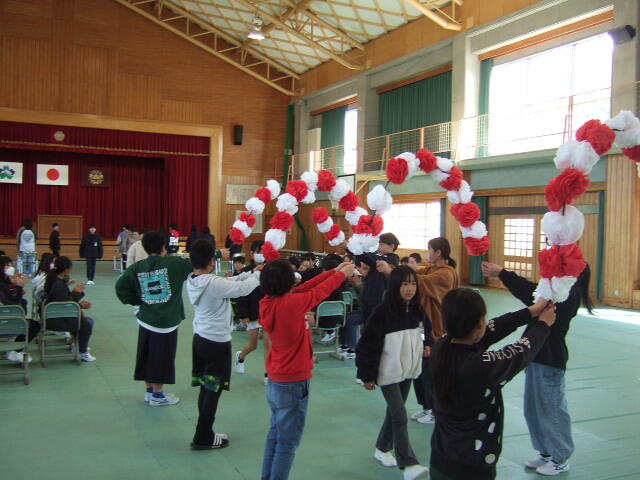 令和元年度以来、4年ぶりに霧っ子ふれあい祭りを実施しました。今回は2部制で、第1部は、谷頭に伝わる「谷頭相撲甚句踊り」の披露、秋田県潟上市との交流事業の報告(6年生参加児童)、本格的なピアノ演奏、そして教職員雄志によるゆかいな演奏会を行いました。第2部は、歴史探検古銭作り、昔のおもちゃ体験「水鉄砲など」、茶道体験、ニュースポーツ体験、科学実験「万華鏡作りなど」、リズムダンス体験、折り紙体験、クリスマスリース作りの8つのブースに分かれての体験活動を行いました。どの体験活動も大変盛り上がり、講師の先生方をはじめ保護者や地域の方々の支援もあって、大変盛り上がりました。