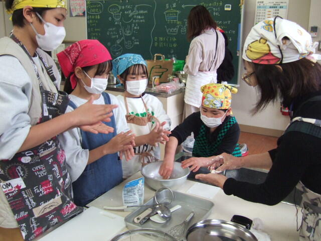 6年生と支援学級児童が、合同で白玉団子を作りました。白玉粉をこねて丸く成形し、沸騰したお湯に入れると、つやつやの白玉団子ができあがりました。あんこをかけて食べると、とってもおいしそうな白玉団子になりました。