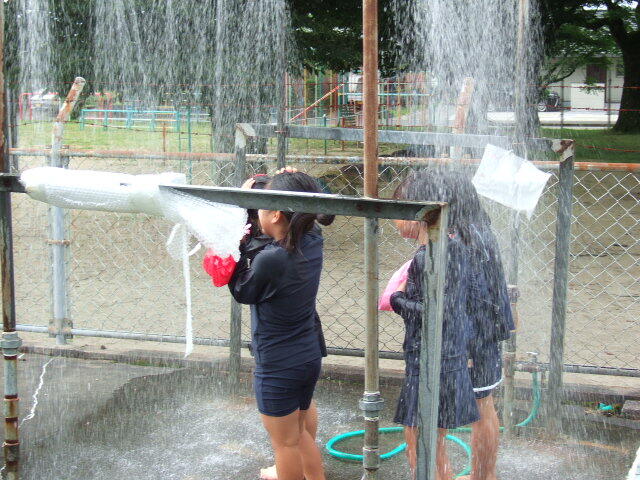 水の事故に備えて、全学年で着衣泳を体験しました。服を着たまま水に浮いたり、泳いだりしてその難しさを体験しました。いつもより体が自由に動かせなかったり、水の抵抗を感じたりして思うようにいかなかったという感想がありました。また、もしもの時には、ペットボトルや水に浮くものが活用できることなども学びました。もうすぐ夏休み。子供だけで池や川に行ったりしないよう決まりを守った行動が一番大切ですね。
