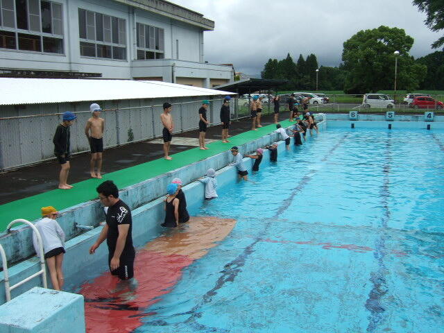 気温と水温の関係で、1日延びたプール開きでしたが、いよいよ水泳学習が始まりました。間隔や身体の接触に気を付けるなど、感染防止対策をとりながら進めていきます。およそ1か月間の水泳学習ですが、水に慣れ、自分の目標に向かって楽しく学習していきましょう。命を守る「着衣泳」も計画しています。